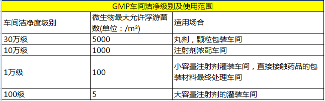 3、GMP車間潔凈級別及使用范圍